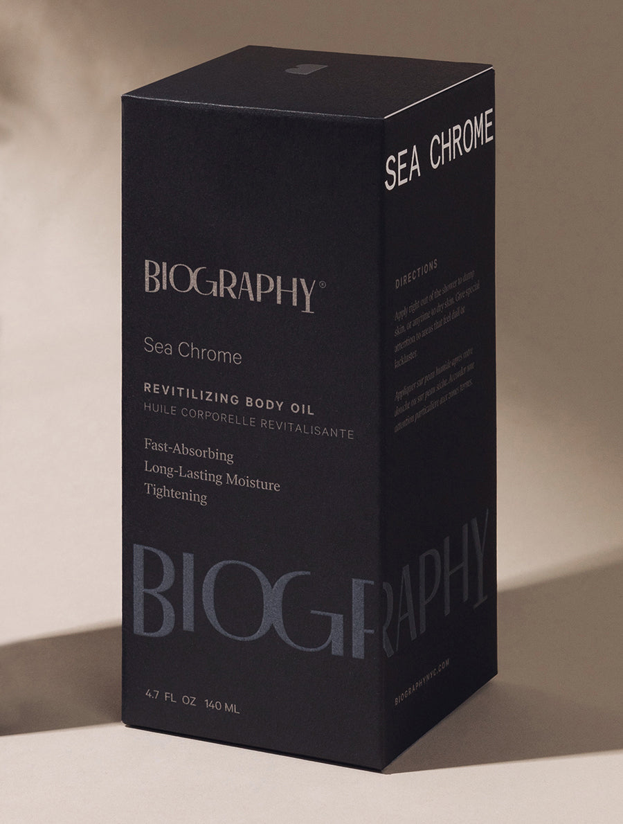 A lightweight and fast-absorbing body oil that assists in tightening skin while leaving a subtle healthy glow. Sea Chrome is a moisturizer with precision benefits. This swirl of oils contains active ingredients for high-performance results with a featherlight feel. This is a fast absorbing oil, so you can fling on a robe right after—no air drying required. For normal skin.